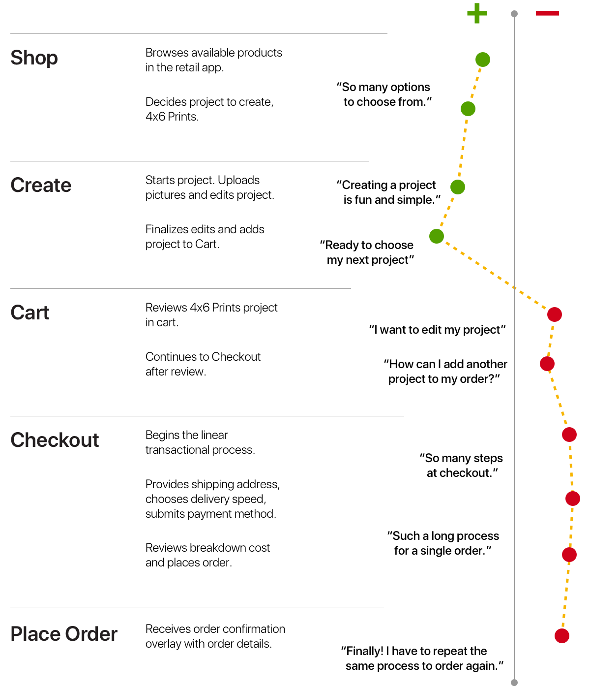 I put together an Experience Map from my 4x6 Prints shopping experience-- from shopping moment and throughout the buying process.