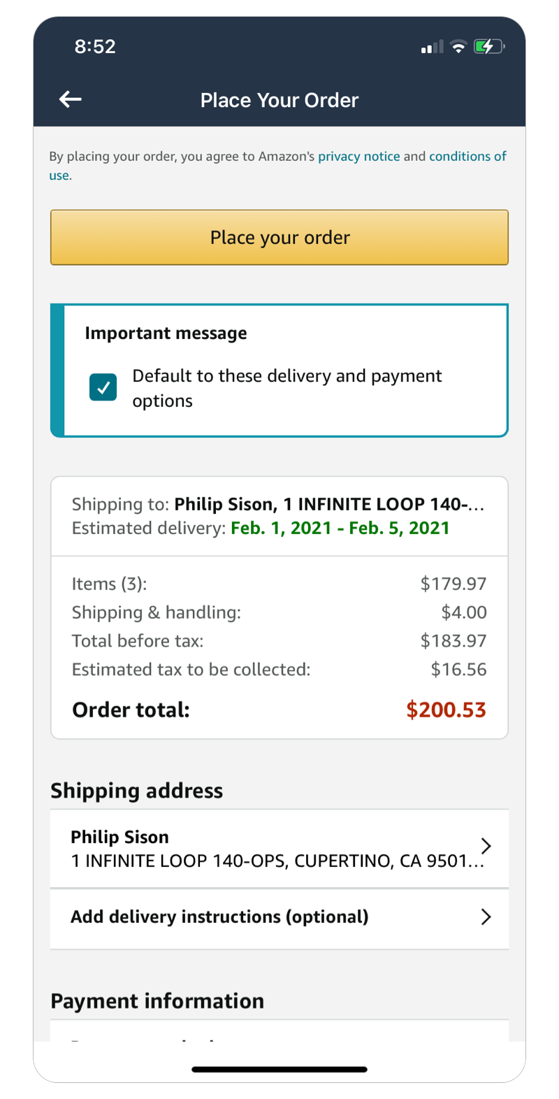 Scenario: I’m looking to purchase three items. I have limited time to shop and purchase three items using the single-item checkout system.