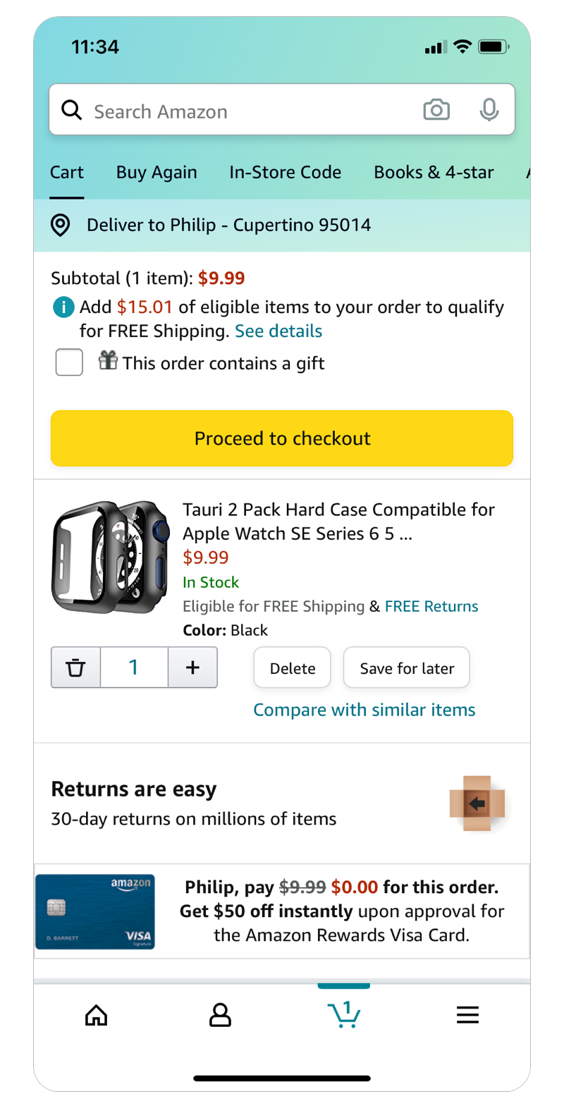 As part of the global nav, the customer is able to navigate in and out of their cart as they continue to shop.