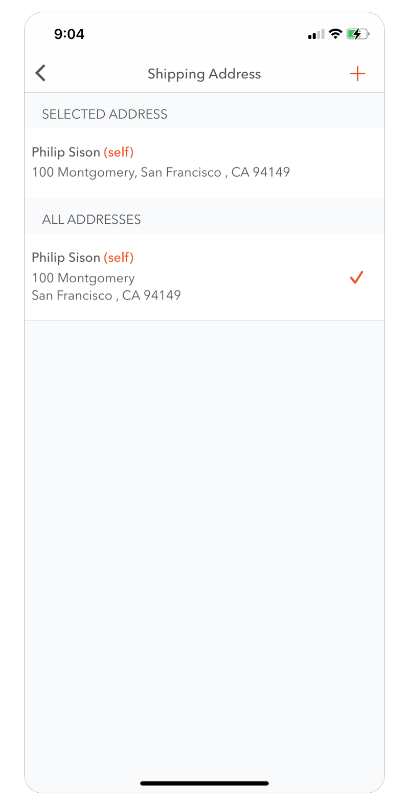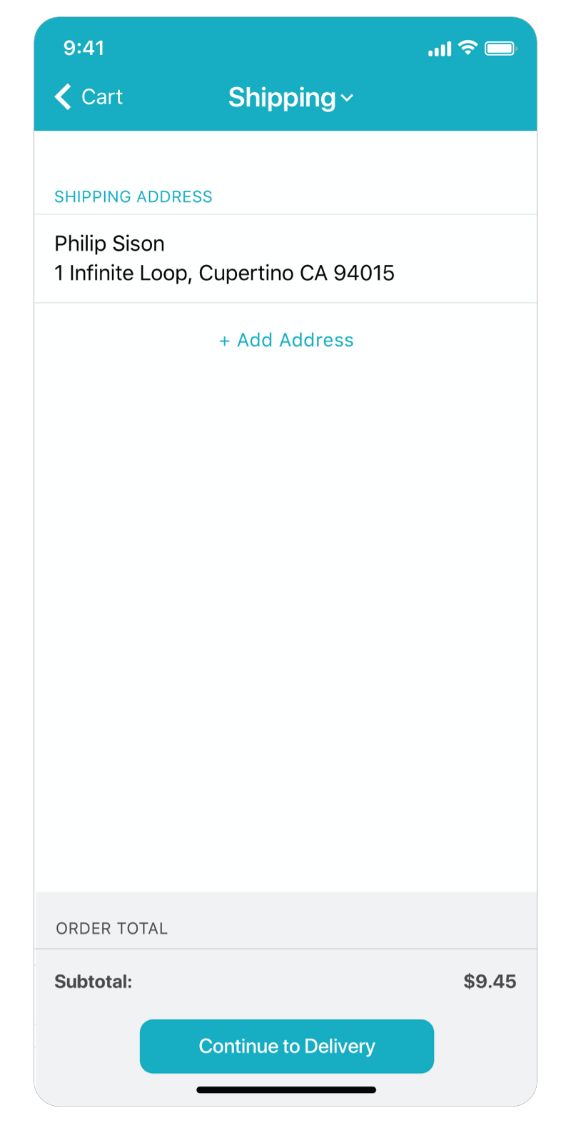 Continuing to shipping address. The CTA is disabled until an address is provided, required for the next screen.